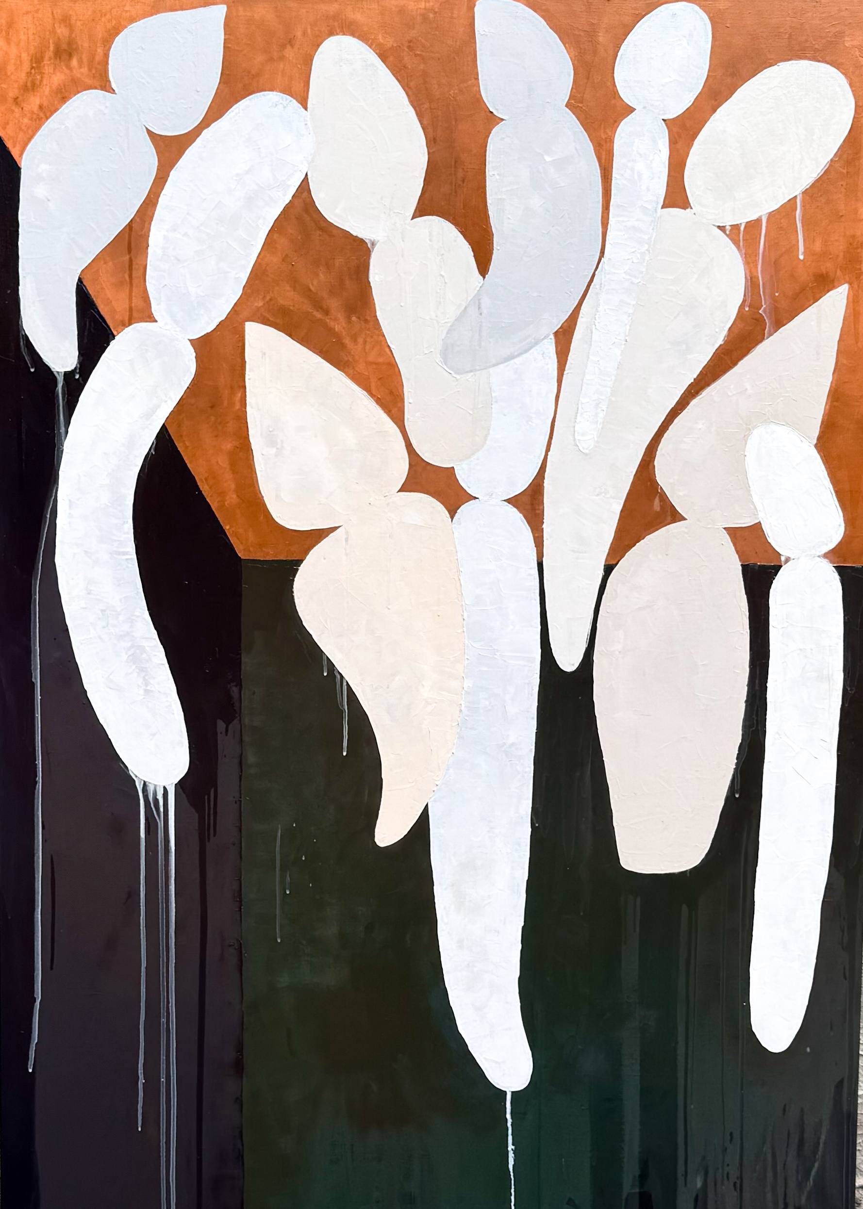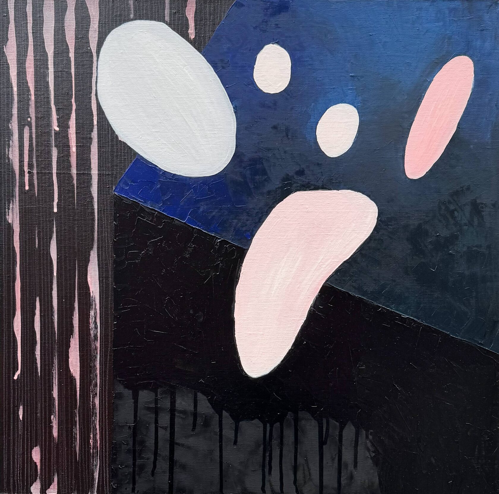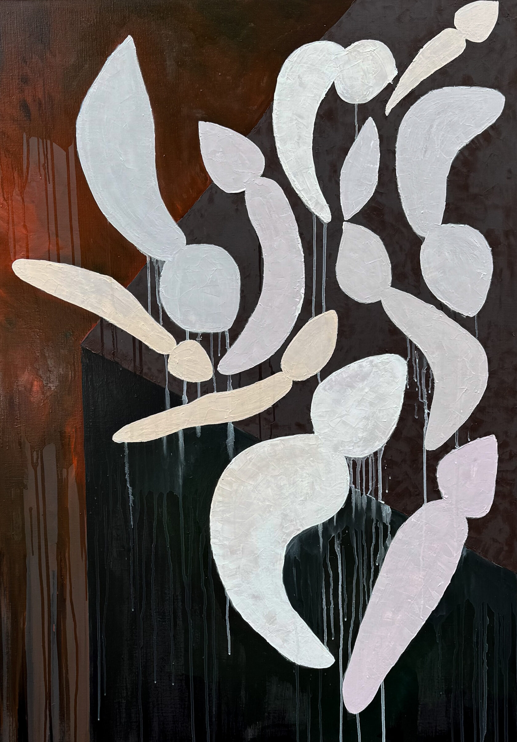 черный холст, масло, лак 100×140 см 2 части, толщина подрамника 4 см 2023