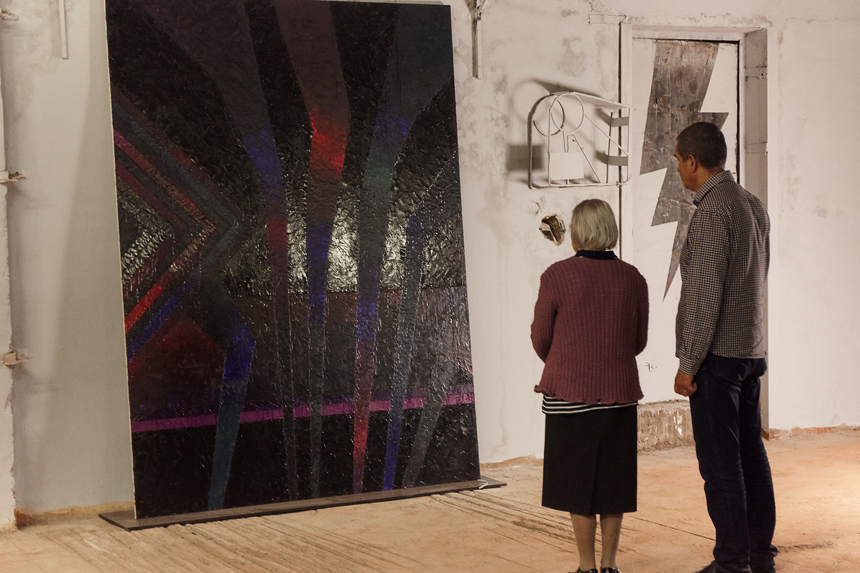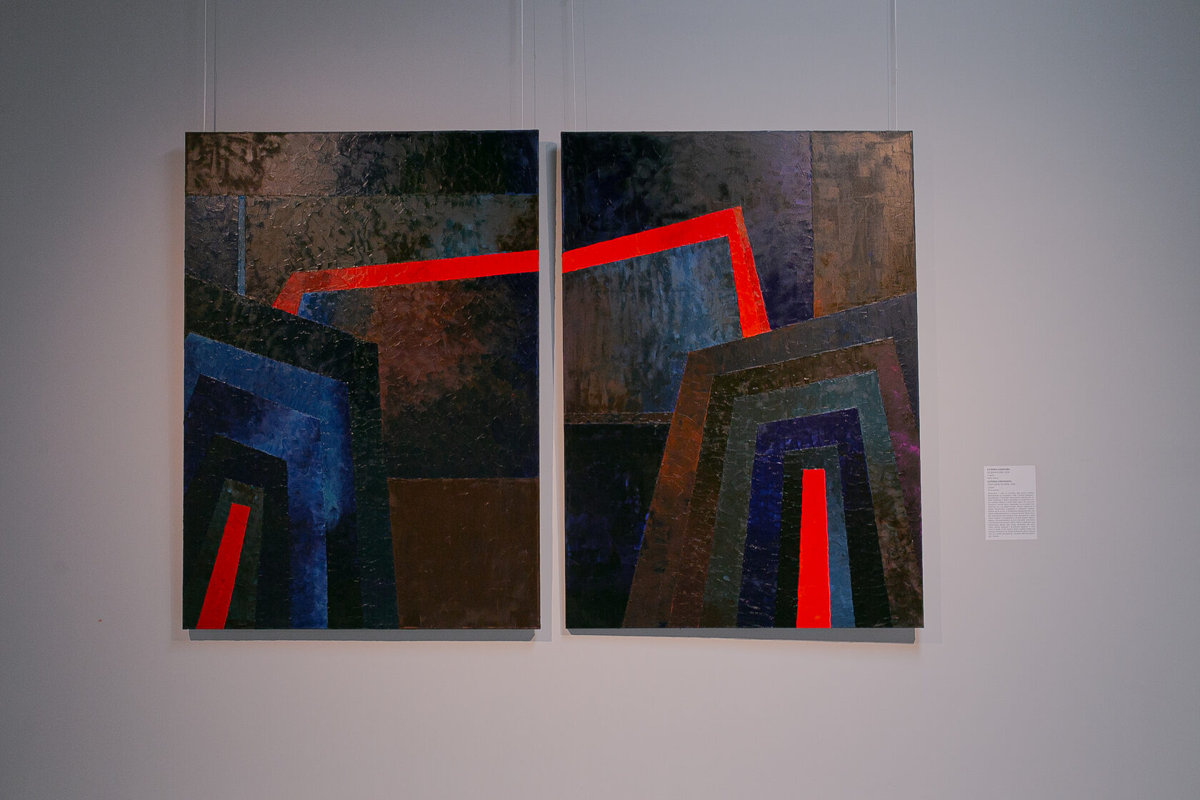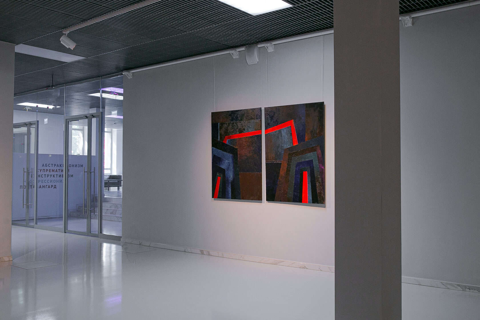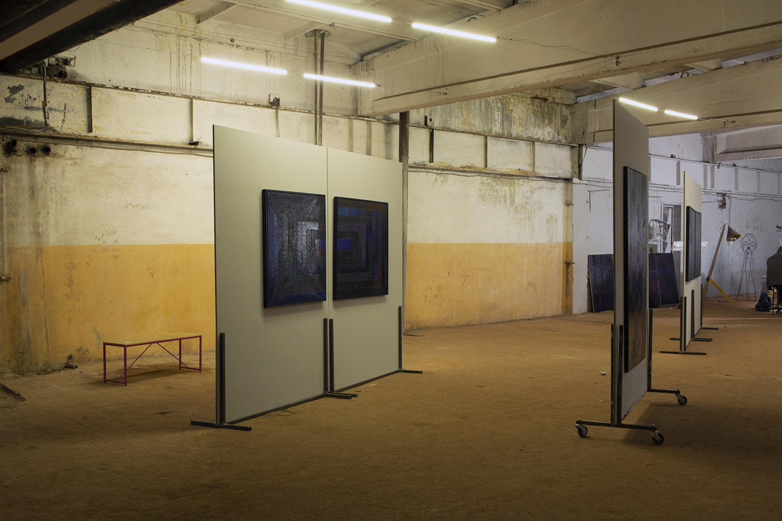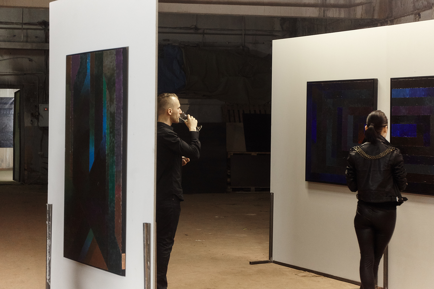 На выставке было представлено продолжение серии работ художницы в стиле геометрической абстракции, с акцентом на темные картины. В этих работах не использовалась черная краска, но благодаря темной гамме они выглядят мрачно и монотонно.