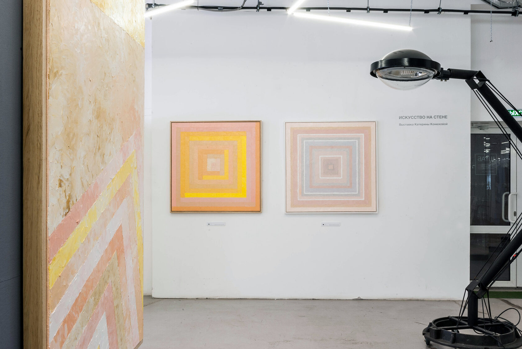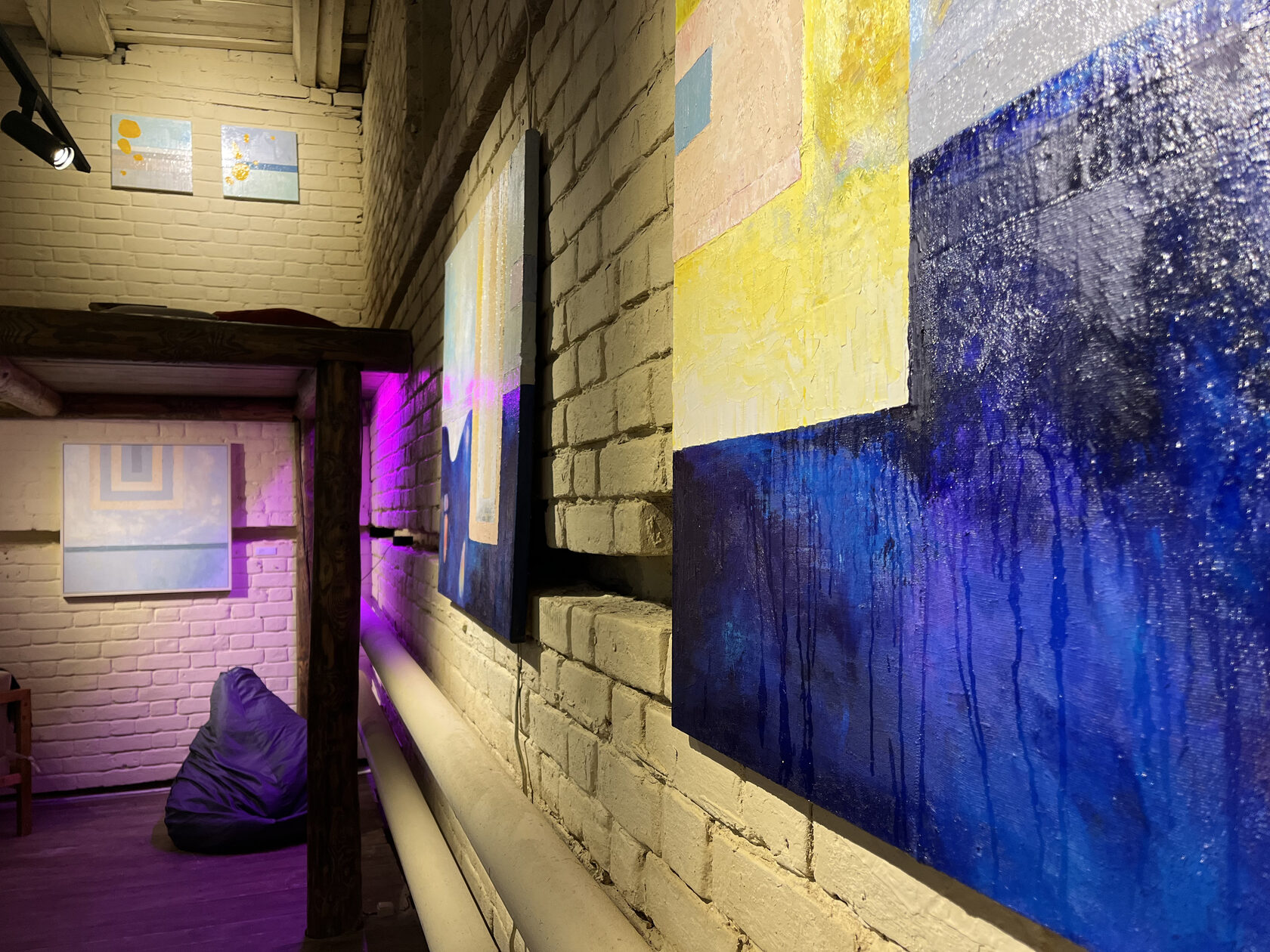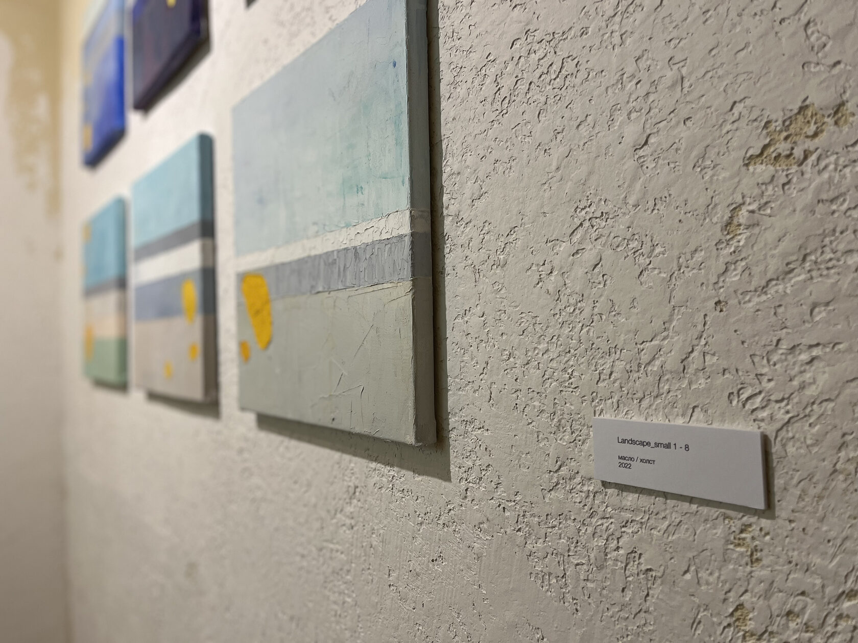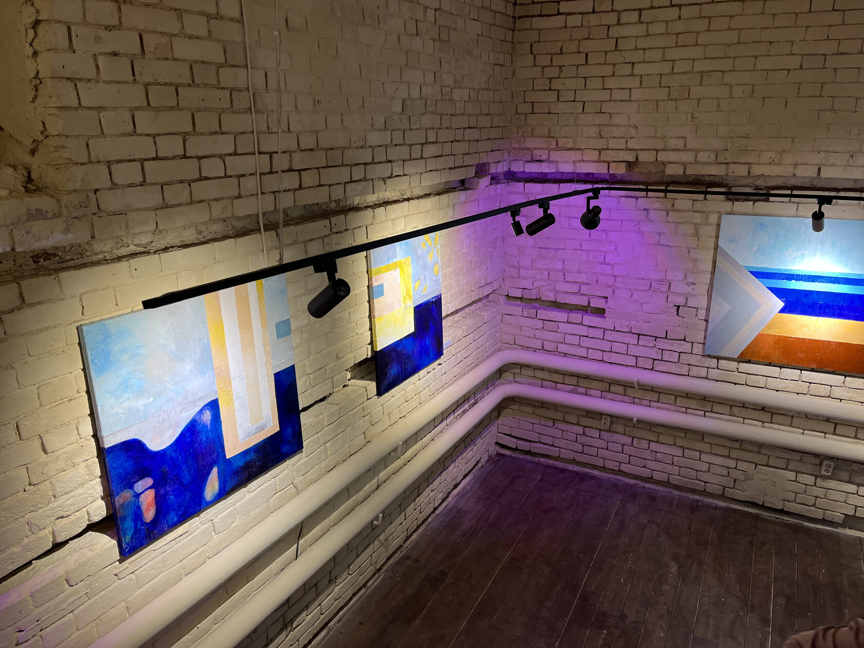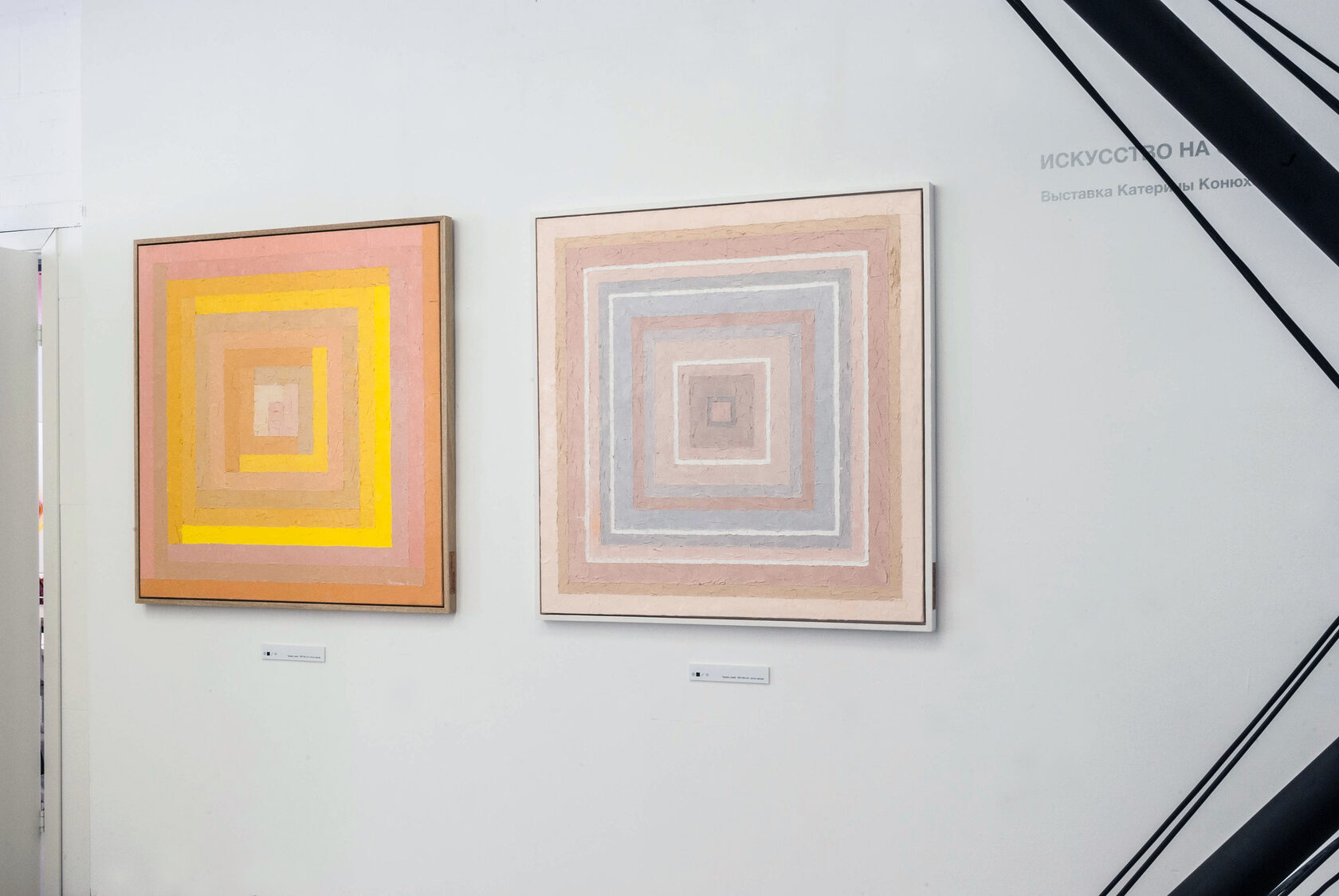 На выставке было представлено продолжение серии работ художницы в стиле геометрической абстракции, с акцентом на темные картины. В этих работах не использовалась черная краска, но благодаря темной гамме они выглядят мрачно и монотонно.