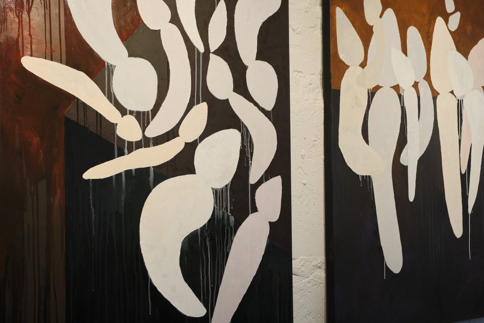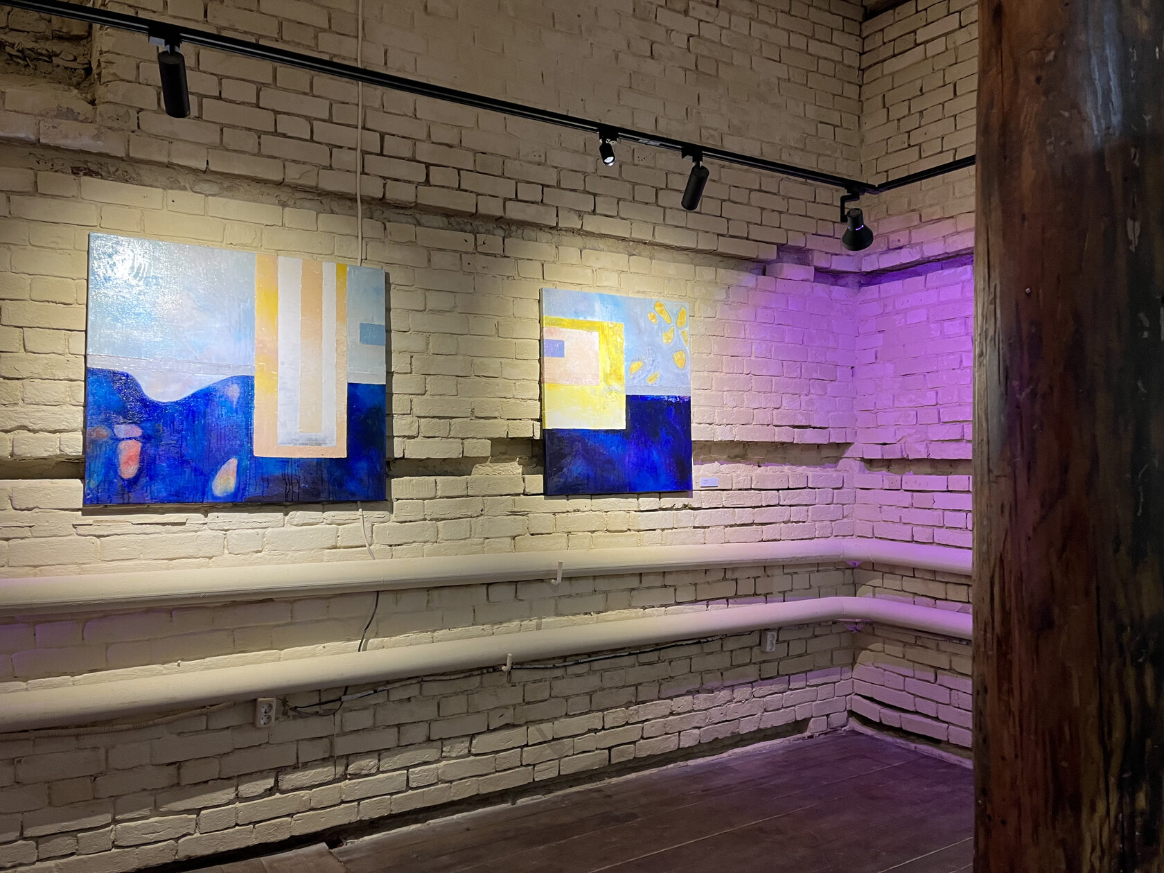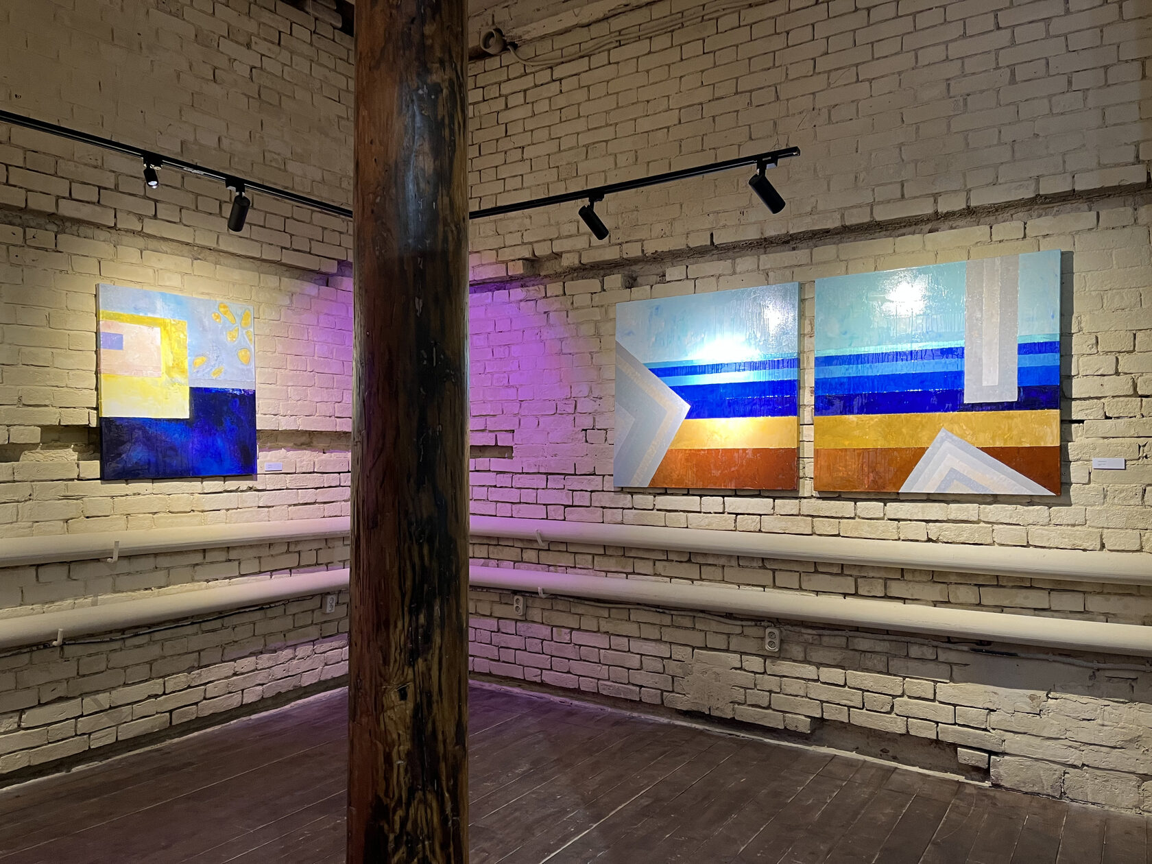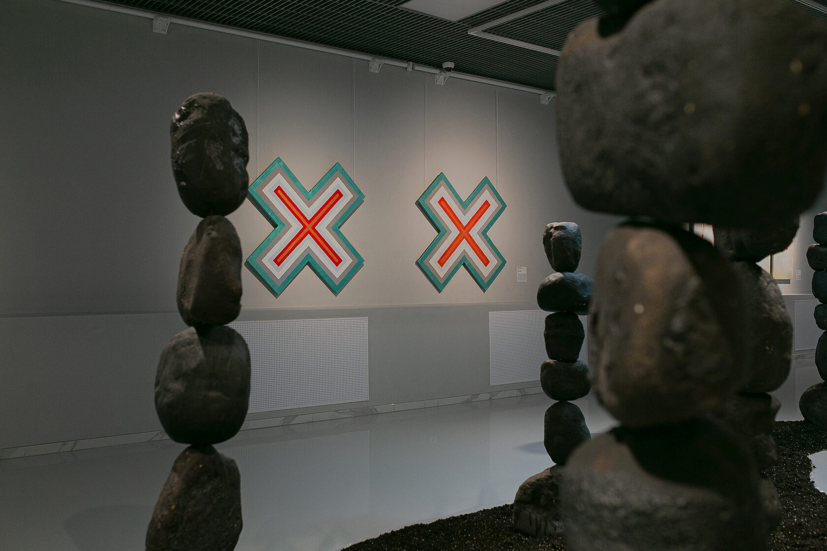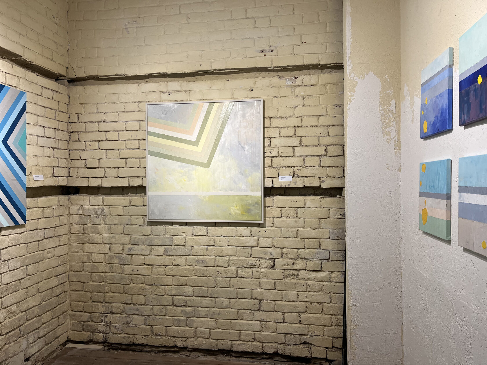 На выставке было представлено продолжение серии работ художницы в стиле геометрической абстракции, с акцентом на темные картины. В этих работах не использовалась черная краска, но благодаря темной гамме они выглядят мрачно и монотонно.
