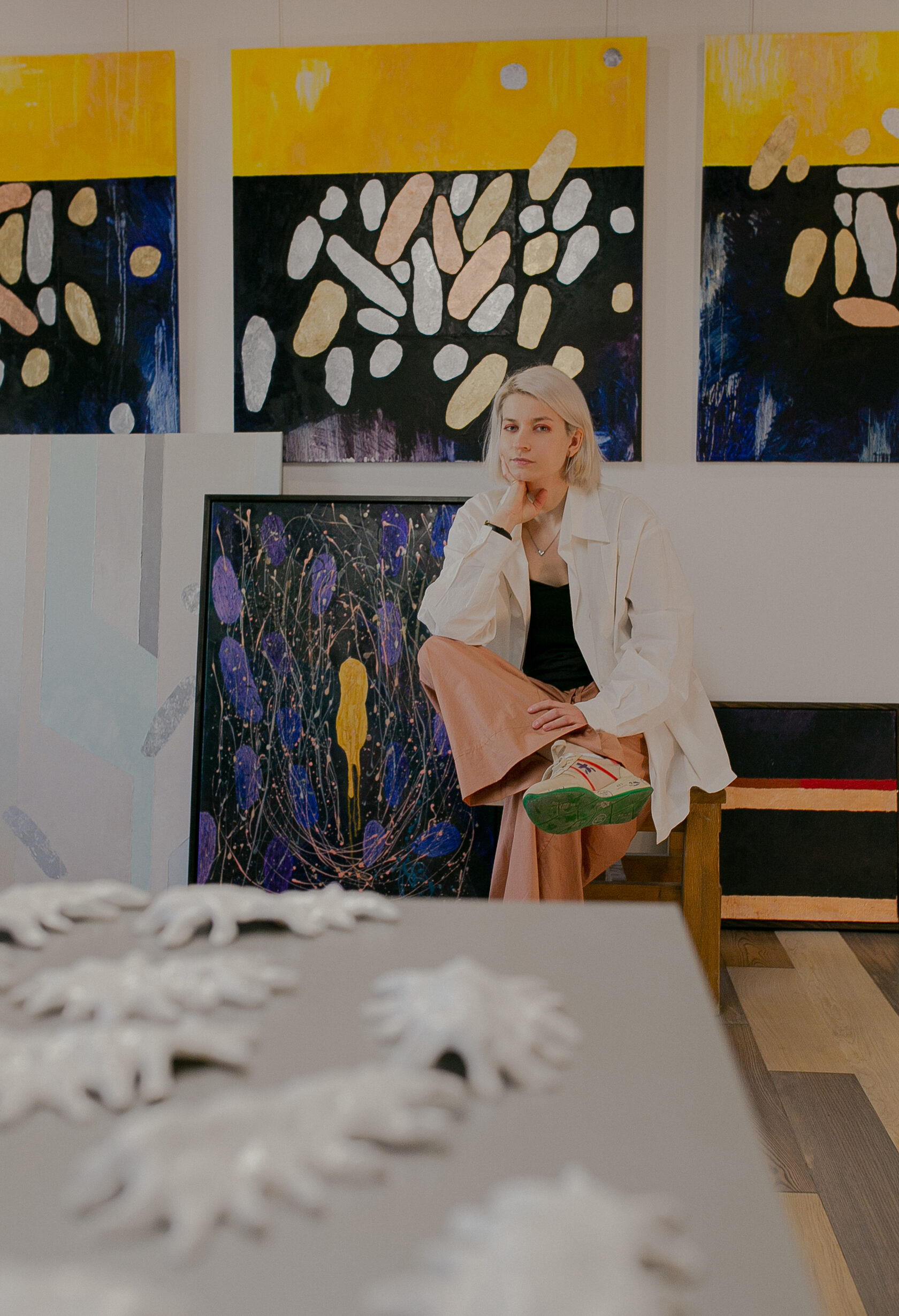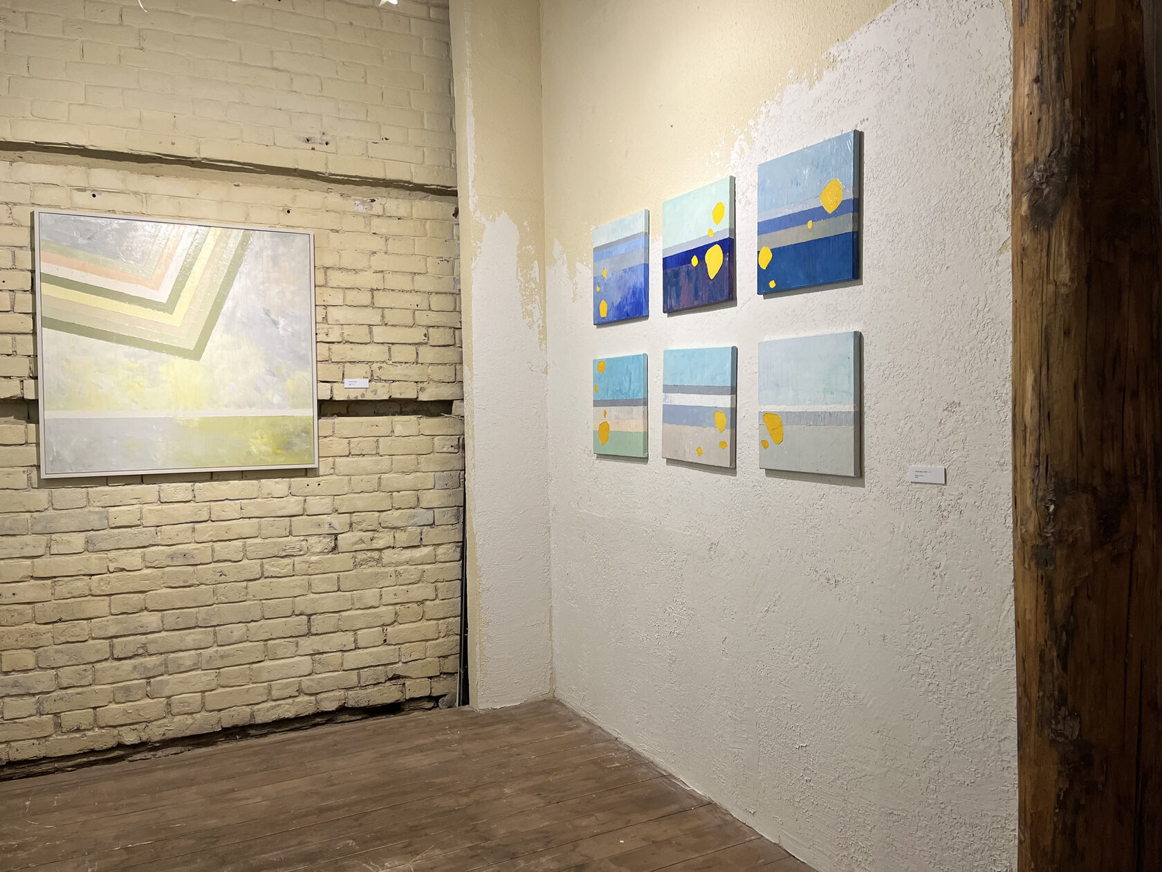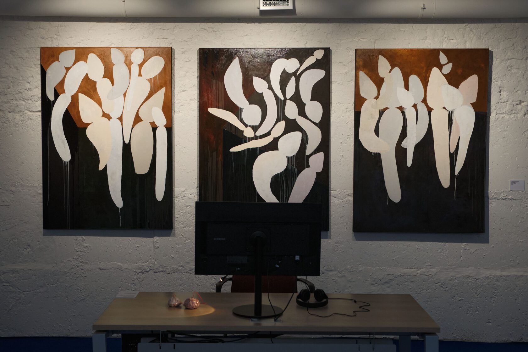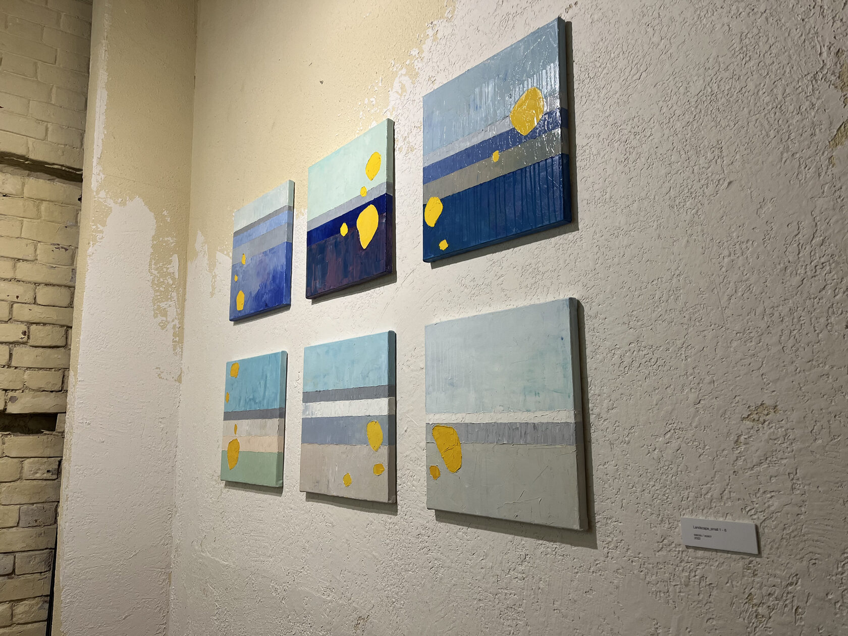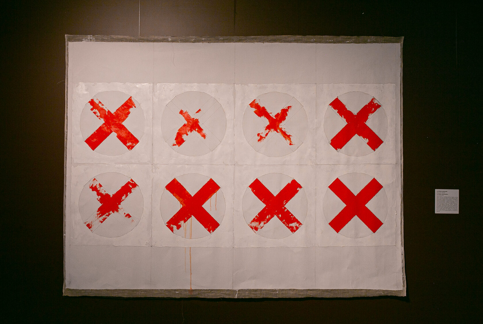 На выставке было представлено продолжение серии работ художницы в стиле геометрической абстракции, с акцентом на темные картины. В этих работах не использовалась черная краска, но благодаря темной гамме они выглядят мрачно и монотонно.